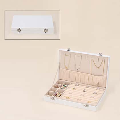 Portable Velvet Jewellery Box with Lock and Anti Tarnish Lining (Size-29x18x5Cm) - White