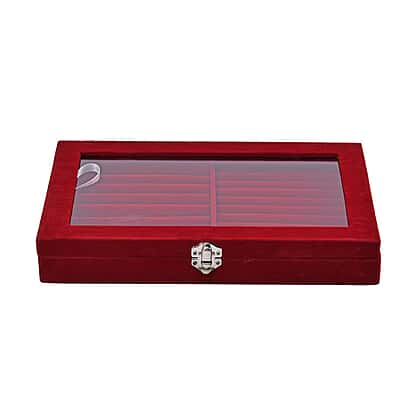 Portable Velvet Ring Box with Glass Window (Half Big & Small Ring Rows) (Size - 29x18x4 cm) - Burgandy