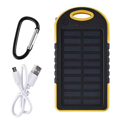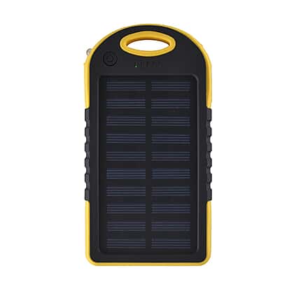 Power Bank with Solar Panel & Clip (5000mah) - Charge 2 Devices - Yellow & Black