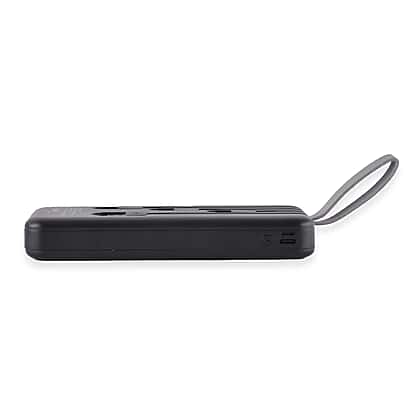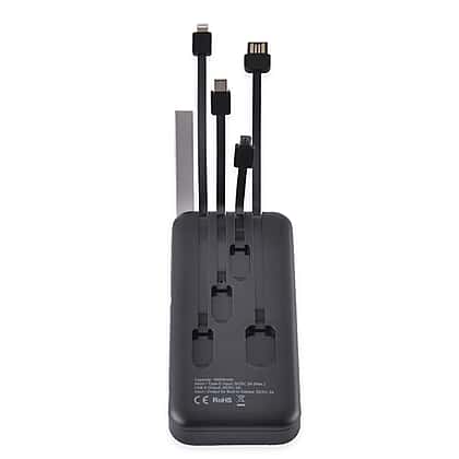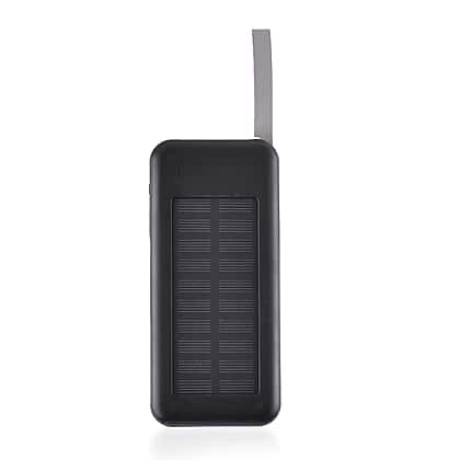 10000mAh Power Bank with Solar Panel & Built in 5 Outputs (4 Cables & 1 USB A Port) - Black