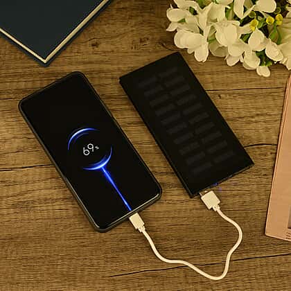 This 5000mAh Solar Power Bank offers reliable charging for both household and outdoor use. With its eco-friendly solar panel, it’s designed for convenience whether you're at home or on a camping trip. The power bank features two USB ports for charging multiple devices simultaneously and a versatile Type-C port for both input and output. Its compact, portable design includes a mountaineering buckle to keep it attached to bags or hooks. An LED torch function provides handy illumination in dark spaces, making it a perfect choice for home, emergency, and travel needs. Includes a 30cm USB cable for easy charging access.