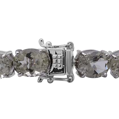 Prasiolite Bracelet (Size 8) in Rhodium Overlay Sterling Silver 46.36 Ct, Silver Wt. 15.00 Gms