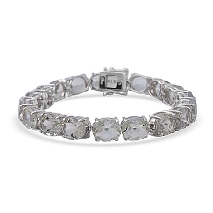 Prasiolite Bracelet (Size - 7.5) in Rhodium Plated Sterling Silver 43.92 ct, Sliver Wt. 12 Gms 43.920 Ct.