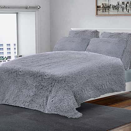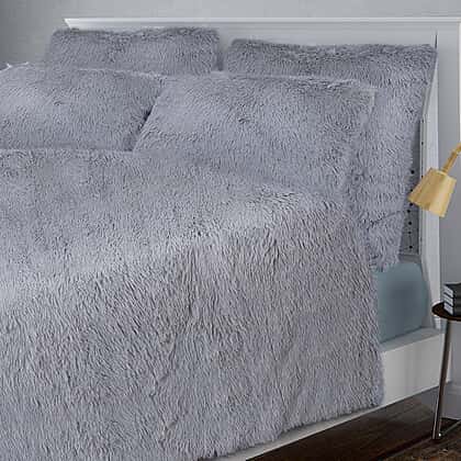 Premium 3 Piece Bedding Set - Faux Fur Blanket (Size 225x220 Cm) and 2 Pillow Cases (Size 70x50 Cm) - Grey