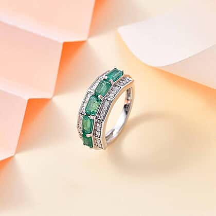 Premium Emerald and Moissanite Half-Eternity Ring in Rhodium Overlay Sterling Silver 1.73 Ct.
