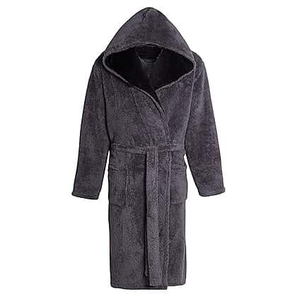This winter style, this warm and cosy woven robe. It features a front tie waist belt, v-neckline and full sleeves. The fleece inner lining for extra warmth and comfort.