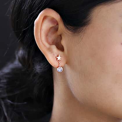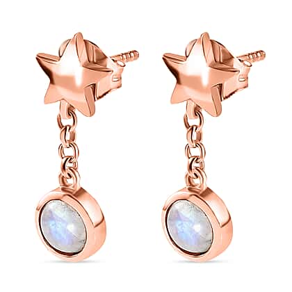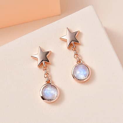 Premium Rainbow Moonstone Dangle Earrings in 18K Rose Gold Vermeil Plated Sterling Silver 1.31 Ct.