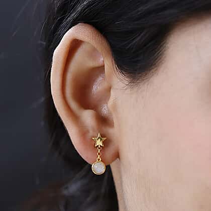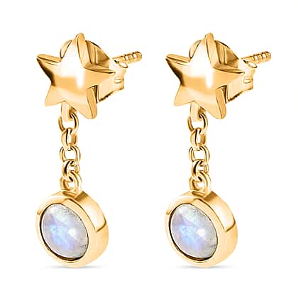 Premium Rainbow Moonstone Dangle Earrings in 18K Yellow Gold Vermeil Plated Sterling Silver 1.31 Ct.