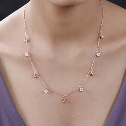 Premium Rainbow Moonstone Necklace (Size - 20) in 18K Rose Gold Vermeil Plated Sterling Silver 2.01 Ct, Silver Wt. 5.23 Gms