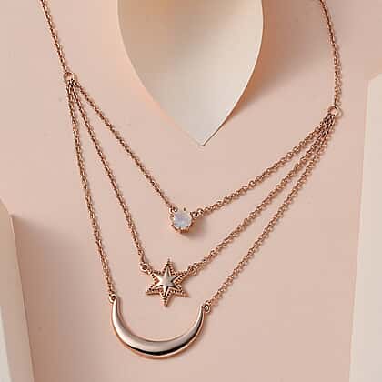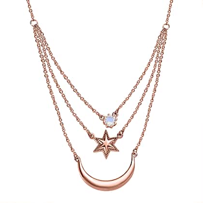 Premium Rainbow Moonstone Necklace (Size - 20) in 18K Rose Gold Vermeil Plated Sterling Silver