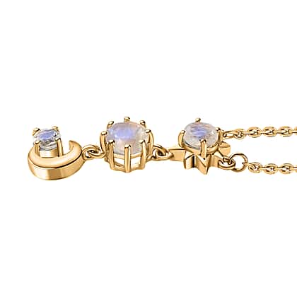 Premium Rainbow Moonstone Necklace (Size - 20) in 18K Yellow Gold Vermeil Plated Sterling Silver 1.84 Ct.
