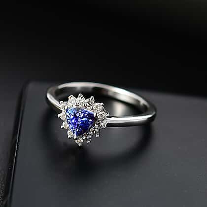 Premium Tanzanite & White Zircon Ring in Rhodium Overlay Sterling Silver