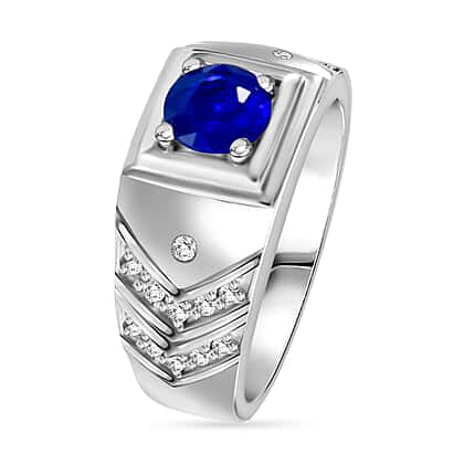 Premium Vietnamese Cobalt Blue Spinel & White Zircon Ring in Rhodium Overlay Sterling Silver 1.48 Ct.