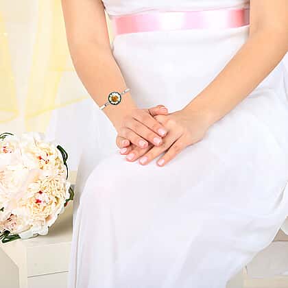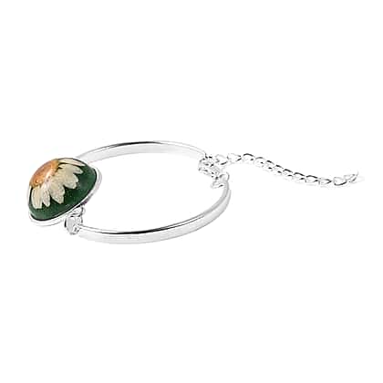Pressed Flower Adjustable Bracelet (Size 6.5 with 2 inch Extender) in Silver Tone