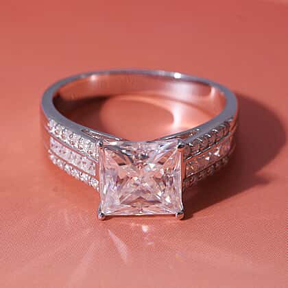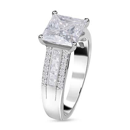 Princess Cut Moissanite Ring in Rhodium Overlay Sterling Silver 3.21 Ct