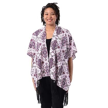 Printed Kimono with Tassel in Purple (Size 90x70+15cm)