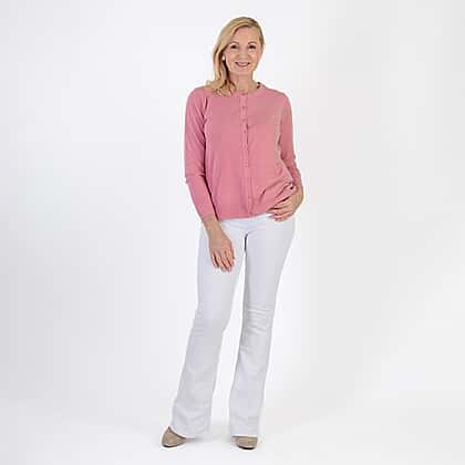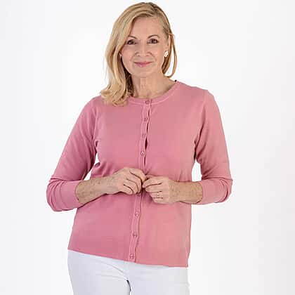 Starting with a beautifully soft feel, this dusty pink cardigan brings comfort and ease to everyday dressing. The lightweight knit blend offers gentle breathability and a smooth finish, making it ideal for layering through the seasons. Its classic crew neckline and button-through front create a timeless look that works well with both casual and smarter outfits. Ribbed cuffs and hem add subtle structure, while the long sleeves provide extra warmth when needed. With its flattering drape and slight stretch, it’s a versatile wardrobe staple designed for relaxed, effortless wear.