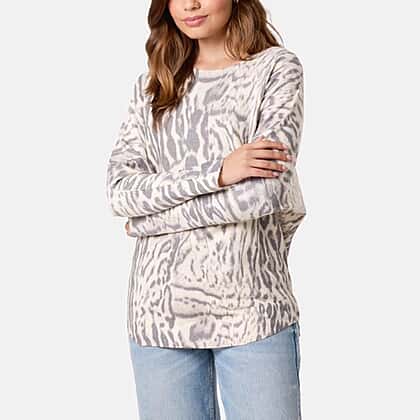 QED Animal Print Long Sleeve Jumper (Size S-M) - Stone