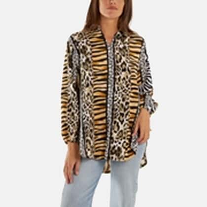 QED London Combined Animal Prints Loose Fit Shirt (Size 8 to 12) - Brown
