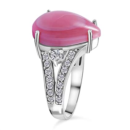 Queen Conch Shell and Natural Zircon Ring in Rhodium Overlay Sterling Silver 7.68 Ct