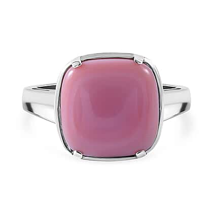 Pink Conch Shell Solitaire Ring in Rhodium Overlay Sterling Silver 6.00 Ct