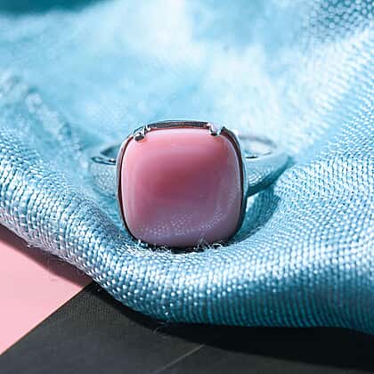 The simplicity of a solitaire design finds a touch of personalization with the smooth pastel facade of a rare pink conch shell in this solitaire ring crafted in fine silver. The conch shell ring has a lovely cushion shape making it an ideal choice for creating a modern yet understated look. The gemstone holds a deep sentimental value and aligns with the wearer's unique personality and style.