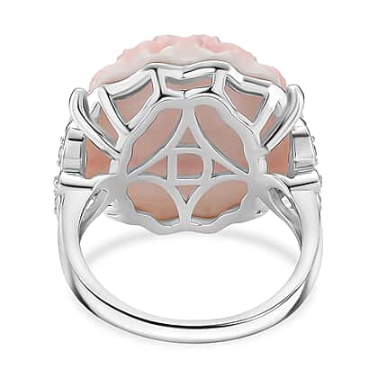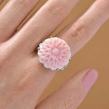 A gentle touch of natural beauty defines this queen conch shell ring, adding a soft, graceful charm to any outfit. The carved conch shell showcases its petal-like detailing with a warm, soothing hue, beautifully complemented by dazzling white zircons set along the shoulders. Its openwork gallery adds height and artistry, giving the ring a standout silhouette from every angle. Crafted in rhodium-plated 925 sterling silver, the ring offers durability and a lasting mirror-like shine. Its hypoallergenic nature offers safety and comfort to sensitive skin. This piece blends subtle sparkle with a calming, nature-inspired presence that feels truly special.