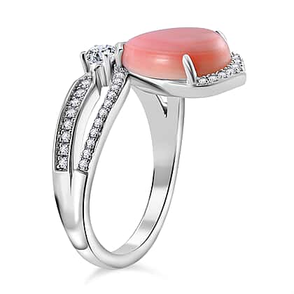 Pink Conch Shell, White Zircon Fancy Ring in Rhodium Plated Sterling Silver 4.040 Ct.
