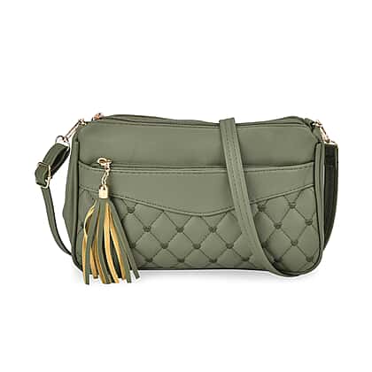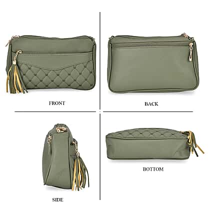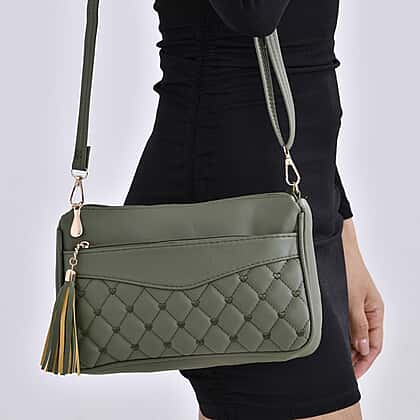 Quilted Messenger Crossbody Bag (Size 25x7x16 cm) - Green & Black