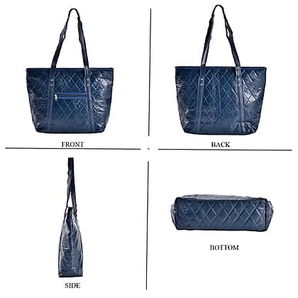 Quilted Pattern Genuine Leather Bag - Navy