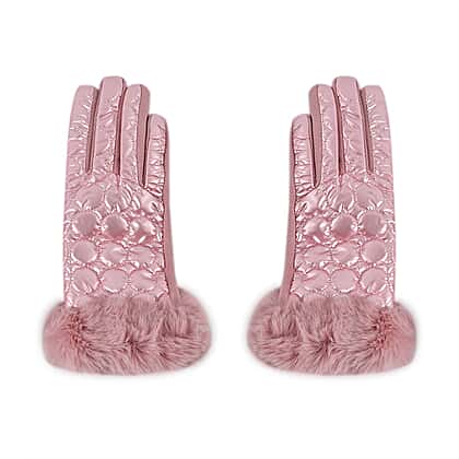 Quilting Gloves With Faux Fur Cuff & Screen Touch Mode - Baby Pink