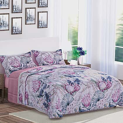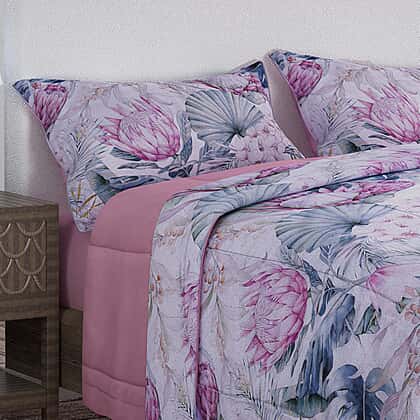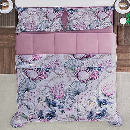 3 Piece Set - Floral Digital Printed Duvet Cover and Pillowcase - Navy