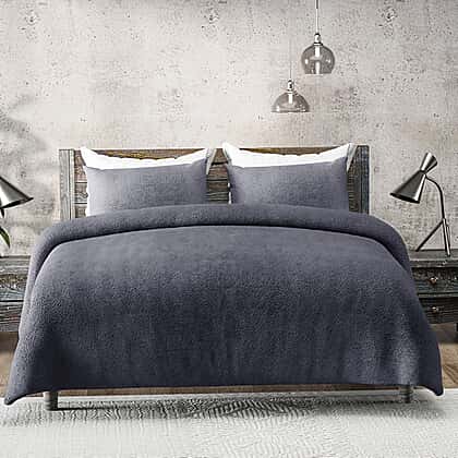 Luxury Edition - 3 Piece Set Teddy Fleece Duvet Cover & 2 Pillowcases - Grey