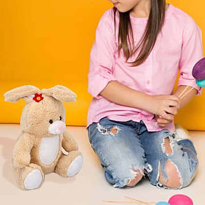 - ADORABLE DETAILING: The red and yellow flower detailing adds an adorable appeal to this stuffed rabbit