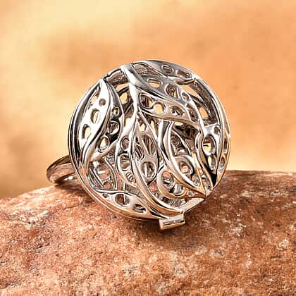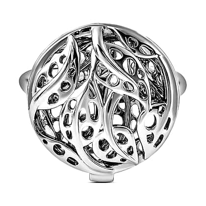 RACHEL GALLEY Leaf Collection - Latticework Openable Solitaire Ring in Rhodium Plated Sterling Silver, Silver Wt. 8.12 Gms