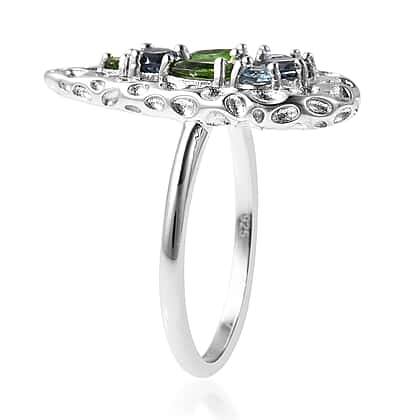 RACHEL GALLEY Misto Collection Blue Topaz and Chrome Diopside Ring in Rhodium Plated Sterling Silver, Silver Wt. 4.54 Gms