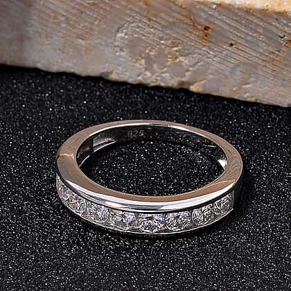 RADIANTA Moissanite - GRA Certified D-VVS1 Moissanite Band Ring in Rhodium Overlay Sterling Silver 1.00 Ct.