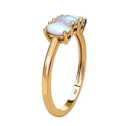 Rainbow Moonstone 3 Stone Ring in 18K Vermeil Yellow Gold Plated Sterling Silver 1.779 Ct.