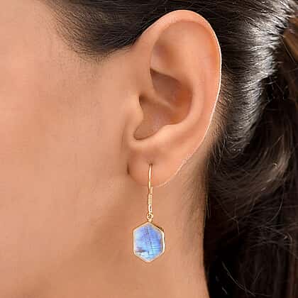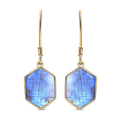 Rainbow Moonstone Hexagon Earrings (with Hook) in 18K Yellow Gold Vermeil Plated Sterling Silver 7.85 Ct.