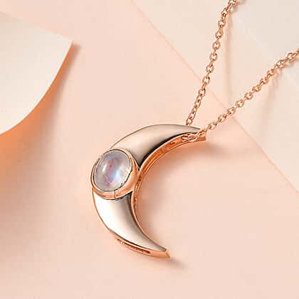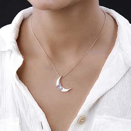 Rainbow Moonstone Necklace (Size - 20) in 18K Rose Gold Vermeil Plated Sterling Silver 1.92 Ct.