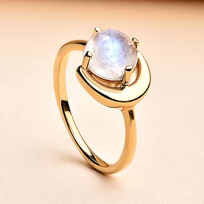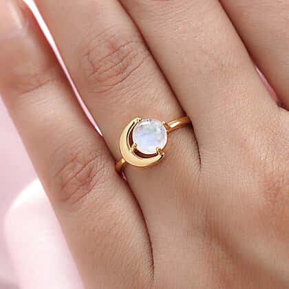 1.5 Ct. Rainbow Moonstone Celestial Theme Ring in 14K Gold Plated Sterling Silver