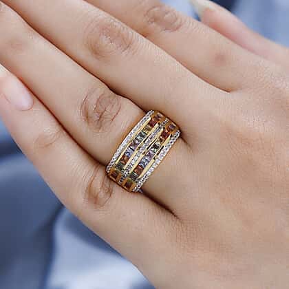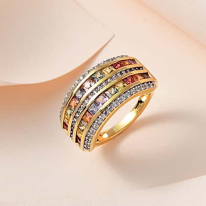 Rainbow Sapphire & Natural Zircon Ring in 18K Yellow Gold Vermeil Plated Sterling Silver 2.43 Ct.