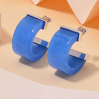 These blue jade half-hoop earrings are a bold statement of sophistication and style. Featuring a smooth, vibrant blue jade stone, these earrings bring a pop of blue colour and elegance to any look. The sterling silver setting with rhodium overlay enhances the durability and shine, ensuring lasting beauty and a luxurious finish. With a generous 42.00 ct. weight, these half-hoops create a unique, contemporary appeal while being comfortable for extended wear. Jade is often associated with harmony and balance, making these earrings a meaningful addition to your collection.