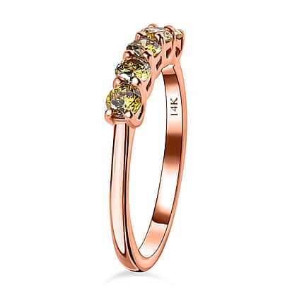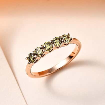 14K Rose Gold I1-I2 Natural Olive Green Diamond 5 Stone Ring 0.50 ct, Gold Wt. 2.3 Gms 0.500 Ct.