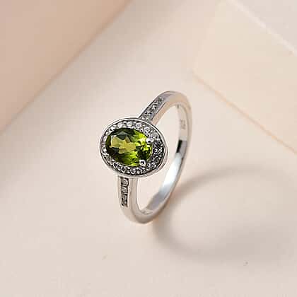 Rare Vesuvianite and Natural Zircon Ring in Platinum Overlay Sterling Silver 1.47 Ct.