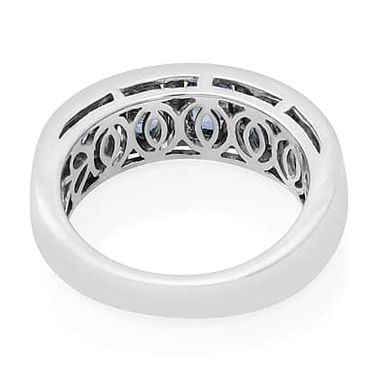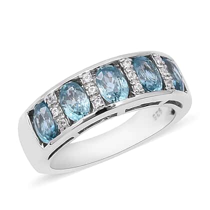 Ratnakiri Blue Zircon and Cambodian White Zircon Half Eternity Band Ring in Rhodium Plated Silver