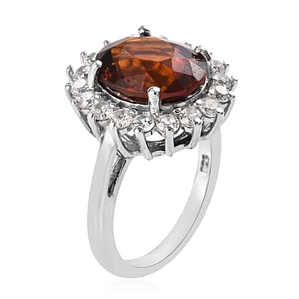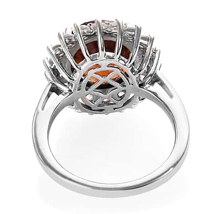 7 Carat Ratnapura Hessonite Garnet and Zircon Halo Ring in Platinum Plated Silver