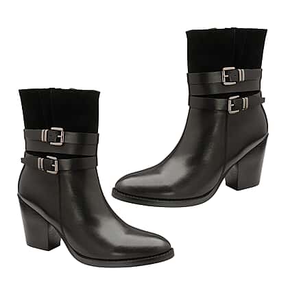 RAVEL Black Shores Leather Heeled Ankle Boots