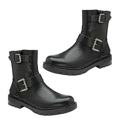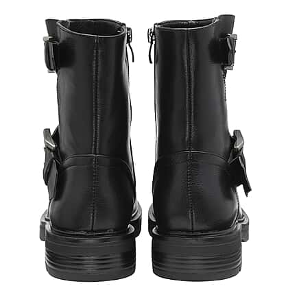 Give your footwear collection a boom with these Clarice twin buckles zip-up ankle boots by Ravel. The biker style inspires the design of this boot with a mid-calf boot, rounded toe, and low block heel. It features two decorative buckles and is finished in faux leather. To give your outfit a boom, you can team it up with an oversized white shirt and jeggings to complete the look.