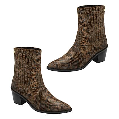 Ravel Langton Snake-Print Leather Ankle Boots (Size 4) - Tan